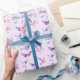 Cute Purple Pink Butterfly Kids Birthday Wrapping Paper