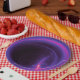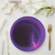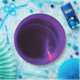 A wispy and ethereal abstract design. This graceful design is composed of large concentric circles of vivid and bright purple and pink with a burst of orange and pink at one point which looks like an eletrical surge of some kind. A delicate nebulous fractal pattern.