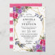 Pink and Purple Spring Flowers Gold Frame Wedding Invitation