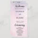 Adding a touch of enchantment, the words "Welcome," "Ceremony," and "Wedding Party" are delicately rendered in a decorative script font. These ornate details infuse the program with a sense of magic and celebration, beautifully contrasting with the understated block font. This harmonious blend of styles captures the essence of modernity and timeless allure.