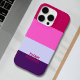 A trendy iPhone 16 Pro case featuring a pink and purple stripes pattern. Stylish and modern, this personalized accessory adds a unique touch while keeping your device protected.