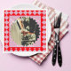 Add a sweet pop of retro charm to your celebration with this pink and red wedding napkin, designed to impress! The bold chequerboard border in rich red and playful pink frames your favourite couple photo, highlighted by a scalloped edge detail. The word “Cheers!” adds the perfect festive touch, with customizable text for names and your special date.