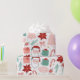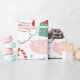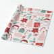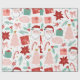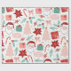 Pink and Red Christmas themed gift wrap featuring Christmas trees, candy, presents and even Santa Claus.