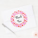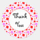 A Thank You sticker with pink and red dots large and small in a cute retro background pattern. Click Customize It to change fonts, background colours and more, even save your design for later.