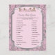 A Modern Trendy Baby Girl Shower Game - Candy Bar Game Flyer. Look for more sizes and lots of matching products in my collection set. Featured in a Pink and Silver Damask Floral with cute little Teddy Bears. Lots of matching products available in my "COLLECTION SETS". Copy and paste this link to my collection set if you don't see it below - ⭐ https://www.zazzle.com/collections/teddy_bear_baby_shower_theme-119771687325874030 ⭐Also available in a pastel pink and baby blue . ⭐This Product is 100% Customizable. Graphics and / or text can be added, deleted, moved, resized, changed around, rotated, etc... ⭐99% of my designs in my store are done in layers. This makes it easy for you to resize and move the graphics and text around so that it will fit each product perfectly. 📌 (Please be sure to resize or move graphics if needed before ordering) You can also "TRANSFER DESIGN" on other Zazzle products and adjust the design to fit most of Zazzle items. (button is down on the right side of the page) This design is made with high resolution vector and/or digital graphics for a professional print. 📌NOTE: (THIS IS A PRINT. All Zazzle product designs are "prints" unless otherwise stated under "About This Product" on the left side of this page) The design will be printed "EXACTLY" like you see it on the screen and on the product...so please make sure when you do your changes on the resizing of any of the graphics or text that it fits in the areas correctly and that your spelling and wording is how you like it to be in size, color and font. If you have any questions about the "DESIGN ONLY" or need help please contact me at ✉ siggyscott@comcast.net or visit my store link: https://www.zazzle.com/store/designsbydonnasiggy (Copy and Paste) I'll be happy to help. 📌 ALL OTHER QUESTIONS (shipping, refund, the printing, the product, etc...) please contact Zazzle or the Maker ⭐DIRECTLY⭐. Thank you for the support and stopping by my store - DesignsbyDonnaSiggy. © Donna Siegrist⭐⭐⭐ ZAZZLE promises 100% satisfaction. If you don't absolutely love it, Zazzle will take it back! ⭐⭐⭐ 1-888-8ZAZZLE (1-888-892-9953) Phone hours: Mon - Fri: 9AM - 5PM PT (12PM - 8PM ET)