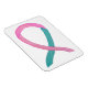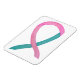 The aer magnet features the painting of a pink and teal awareness ribbon. The teal and pink awareness ribbon means support Hereditary Breast and Ovarian Cancer. Breast cancer uses a pink ribbon. Ovarian cancer uses a teal ribbon. This ribbon combines the two colours in promoting awareness for women who are risk for both cancers given the probability risk in their genes. The teal and pink awareness ribbon art can be customized with personalized messages to make great cause magnets for fundraisers, awareness gifts, or other special events or occasions.