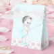 Adorable pink and teal blue girl baby shower favour boxes. You can add text, change the bow colour and add a background colour of your choice to this cute pink princess baby shower favour box.