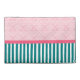 Teal and white stripes combine with a pink brocade/damask pattern on this great accessory bag. A pink and white polka dot bow and a horizontal stripe of hot pink are finishing touches.