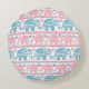 Pink And Teal Ethnic Elephant Pattern Round Pillow