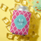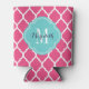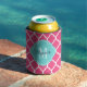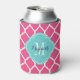 Pink and Turquoise Moroccan Quatrefoil Monogram Can Cooler