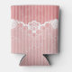 Pink and white background with black lace can cooler