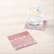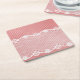 Pink and white background with black lace square paper coaster
