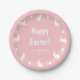 Pink And White Bunnies And Eggs Happy Easter Paper Plate