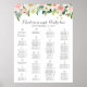Use our pink and white flower wedding seating chart to let your guests know their seating assignments. This design has guests arranged by alphabetical order - be sure to look for our table number version if you prefer that. The wording is completely customizable. Use Zazzle's "Personalize this template" tool to enter your wedding guest information.To add or remove tables or change the placement of the text boxes, font colour or size just click on the "Click to customize further" button to change those things. Be sure to check out our large selection of coordinating items by browsing the Pink, White, and Green Floral Wedding collection!