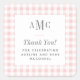 The perfect finishing touch for a baby shower or spring time Southern garden party favour, this pale blush pink and white gingham patterned sticker has an easy to edit three-letter monogram and custom message text to tell your guests how much you appreciate them.