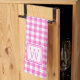 Pink and White Gingham Plaid Monogram Kitchen Towel