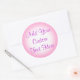 Easily personalize these popular round shape pink stickers and/or envelope seals that have a white gradient in the middle perfect for any text and/or image. Two sizes are available.