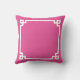 Pink and White Greek Key Border Script Monogram Throw Pillow