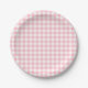 Pink and White Medium Size Gingham Checks Paper Plate