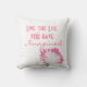 Pink and White Life Quote motivational throw pillow. Pretty in pink--this decorative throw pillow features the motivational quote, 'live the life you have imagined' and is accented with pink flower.