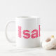 Create your own personalized pink and white polka dot name design on a coffee cup. Add a name to create your own personalized gift. Customize the font style and colour. The designs works best with white background gifts.