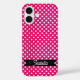 Pink and White Polka dots iPhone 16 Case you can customize or personalize it by adding a text or your name.