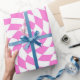 Pink And White Retro Warped Checks Chequered Wrapping Paper