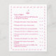 Design features a pink and white rocking horse as top centre design. All questions are customizable. Purchaser is given the option to leave as is or personalize questions. Entire design is bordered by the image of pink bows. Designed to coordinate with the Pink and White Rocking Horse collection.