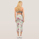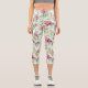 Here's a pretty floral pattern pair of capri leggings that will brighten your day! They feature a watercolor image of pink, white, and lavender roses, along with soft green leaves. The images are placed on a white background. Perfect for spring and summer.