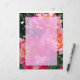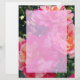Stationery or letterhead paper of a red and white striped roses blooms in this floral art photo of a heirloom floribunda rose, with a pink translucent background for writing.