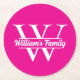 Pink and White | Simple Family Name Monogram Round Paper Coaster