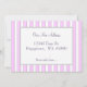 A custom New Address / Just Moved card with editable text in script and block letters front and back. The background has pink stripes light and dark with grey edges in a simple, classic background pattern.