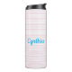 This new take on horizontal stripes pattern design is sweet and simple. Pink and white stripes consisting of pink squares in a line forming stripes! The soft, gentle pink design has room for your name, or that of the recipients. Currently in blue, handwriting typography with a white drop shadow. The colours and font can be customized. A thoughtful gift from a warm human being.