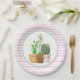 Pink and White Stripes with Cactus Succulents Paper Plate