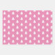 Pink and white trees Merry Christmas holiday Wrapping Paper Sheets. The first sheet features a Christmas trees in pink on white, the second white on pink and the third the text "Merry Christmas" in pink on white.