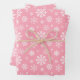 Pink And White Winter Snowflakes Pattern Wrapping Paper Sheet