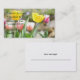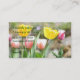 A lovely photo of a garden of pink and yellow tulips, filling the frame of the business card. Size the image way down or up more, and move it around, and remember to test out all the great background colour choices and fonts! Just click on "customize it." Great for massage therapists, acupuncturists, reiki masters, yoga studios, or healing touch practitioners. Plenty of paper choices to choose from, too.
