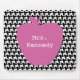 A personalized gift for teachers featuring an illustration of a pink apple over a black and white houndstooth background. Personalize with your name.