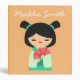 Cute Japanese Kokeshi traditional doll in pink and aqua design. Very cute Japanese theme