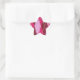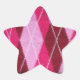 Pink, hot pink and red fuzzy argyle pattern on a sticker.