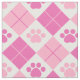 Pink Argyle Paw Print Pattern Fabric