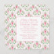 Vintage art nouveau design with pink tulips, vines, and accents of pink hearts, pattern continues on back of card.