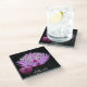 Protect your table top from water marks and stains with this decorative, glass beverage coaster that features the photo image of a pink Astrantia flower set against a contrasting, black background. A stunning, floral design!