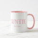Auntie coffee mug design with established year featuring a white stamped font set on a pink background. Click customize to edit the background colour!. Visit our shop to view this mug in a large assortment of grandfather names.