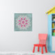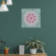 A delicate Lotus mandala in the delicate pink and magenta hues of a spring Azalea, set over a textured turquoise background.