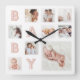Pink Baby Letters Newborn Baby Photo Grid Collage Square Wall Clock
