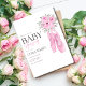 This ballerina-themed baby shower invite is a charming and delicate way to set the tone for a whimsical and elegant celebration. The design features a soft pastel colours blush pink evoking a sense of grace and femininity.