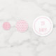 A pink and white collection of table confetti that includes two dot patterns and two square patterns. The words are customizable.