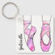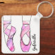 Square keychain featuring the classic ballerina pointe shoes in a hot pink and purple watercolor print on both sides. A charming gift for ballet dancers or ballet lovers, this design keeps the elegance of the shoes front and centre. Personalize with a name to make it uniquely yours.