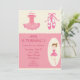 This customizable birthday party Invitation features a little ballerina with her pink tutu and ballet slippers on a pink and cream background and customizable text.